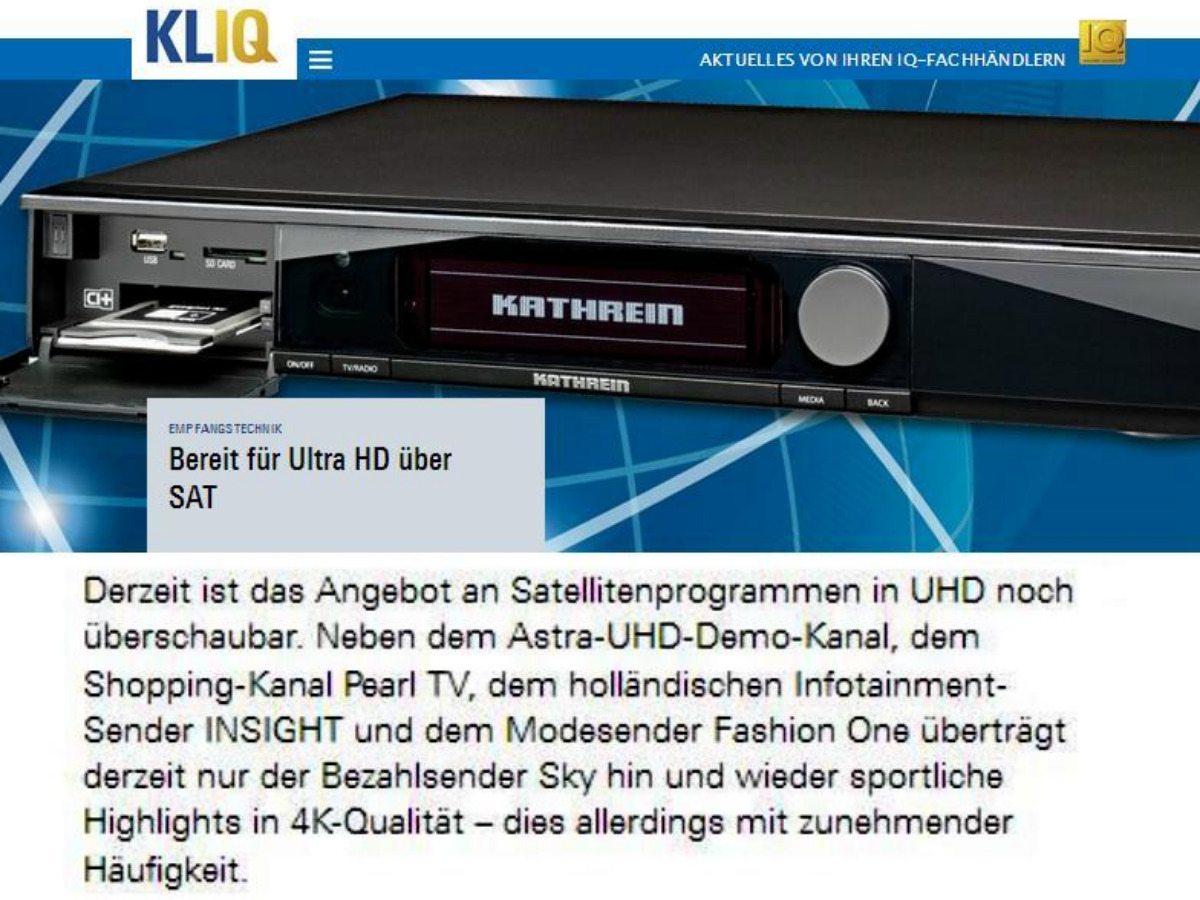Auf unserer Ratgeberseite http://www.kliq.de finden Sie viele aktuelle und interessante Berichte rund um die Themen TV, Empfangsanlagen und Haushaltsgeräte.